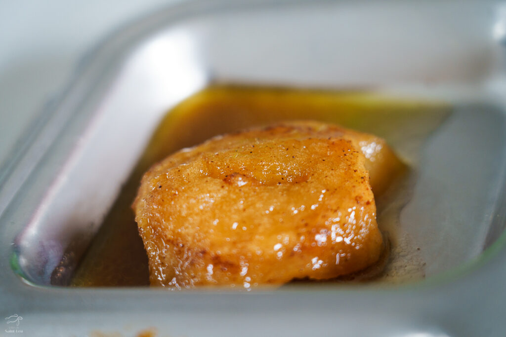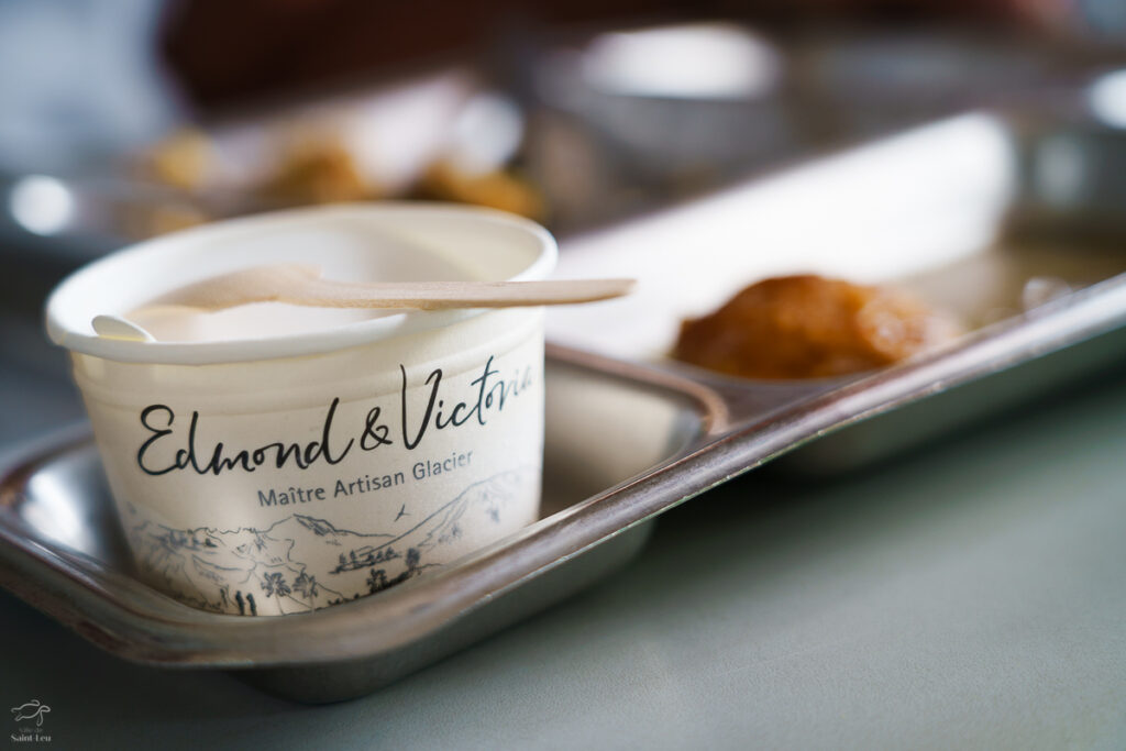 Dessert : pommes caramélisées + glace vanille (fournie par un glacier local)