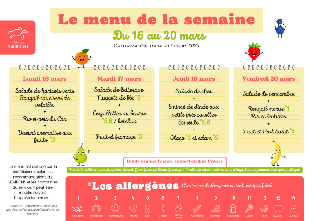 ℹ️ Nous vous rappelons que, selon l’approvisionnement, le menu peut être modifié.