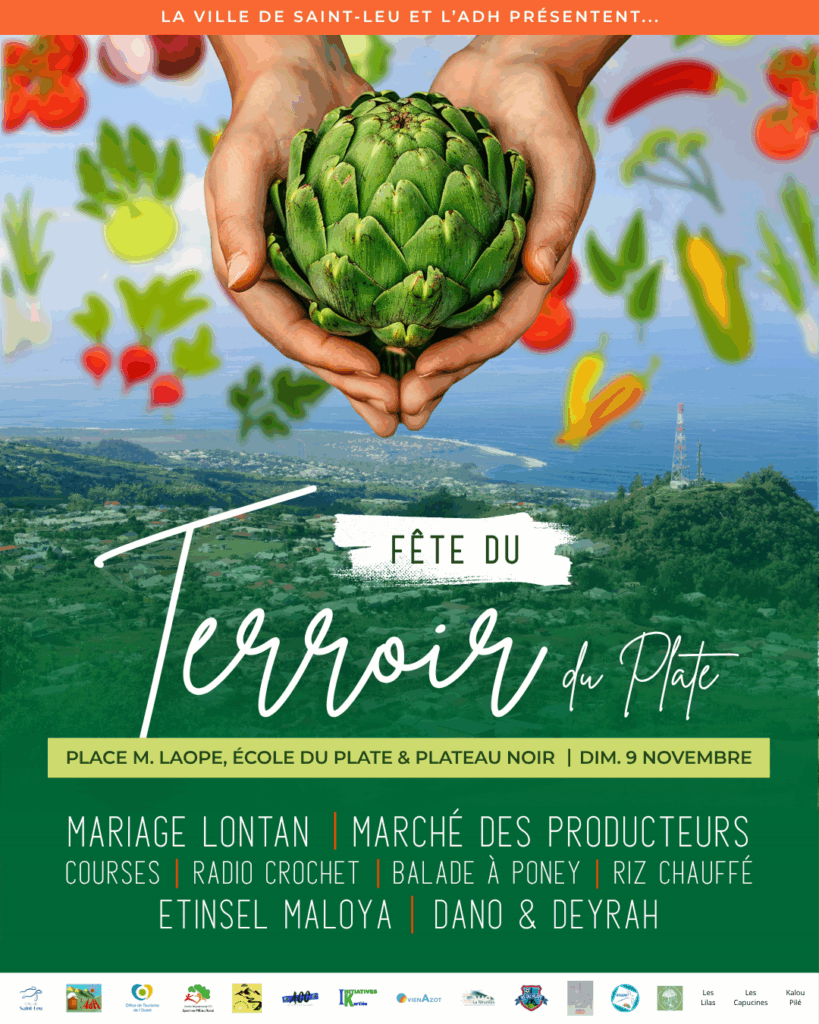La Ville et l’association ADH (Association de Développement des Hauts) sont fières de vous annoncer la tenue de la Fête du Terroir du Plate 2025 ! Cet événement festif et riche en traditions est programmé pour le dimanche 9 novembre 2025. Rendez-vous sur la Place Maxime Laope, à l’école élémentaire du Plate et au plateau noir sportif pour célébrer les richesses, le savoir-faire et la culture de notre île.