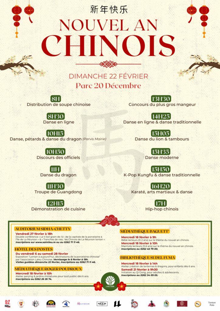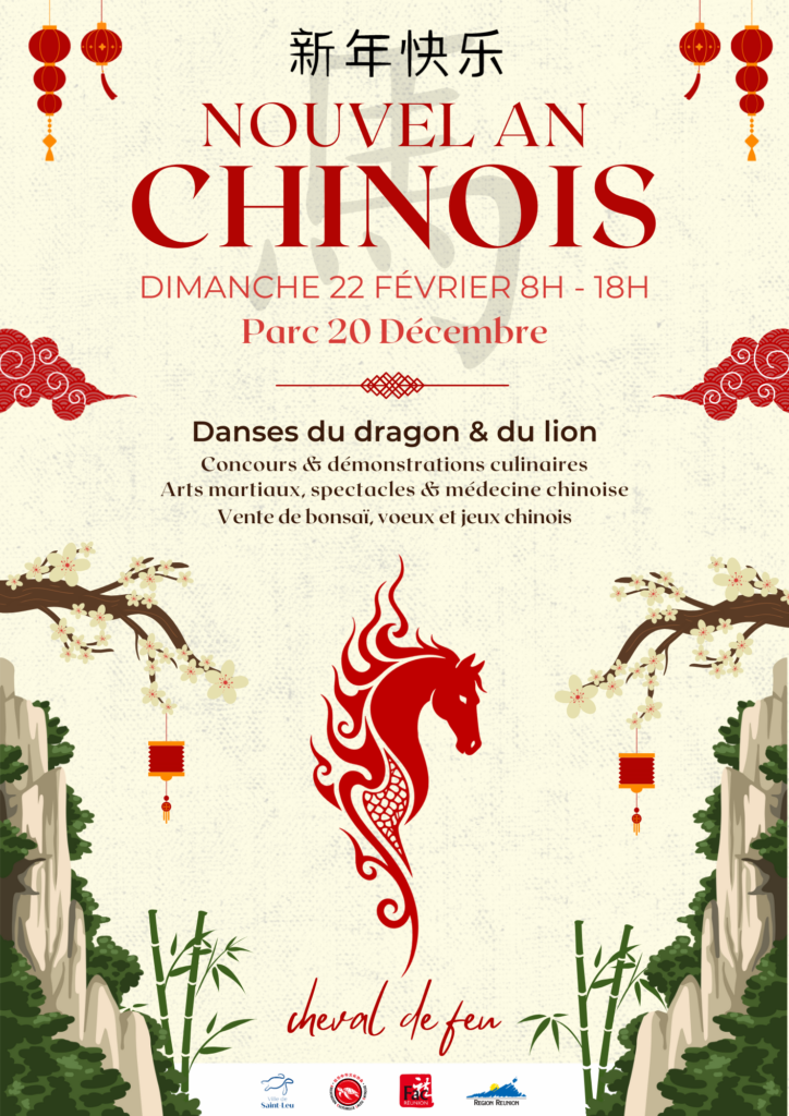 Dimanche 22 février, la Ville de Saint-Leu célèbre le Nouvel An Chinois sous le signe du « Cheval de Feu ». Organisée au Parc du 20 Décembre et dans divers lieux culturels de la commune, cette journée festive invite les administrés à découvrir les traditions et la richesse de la culture chinoise.