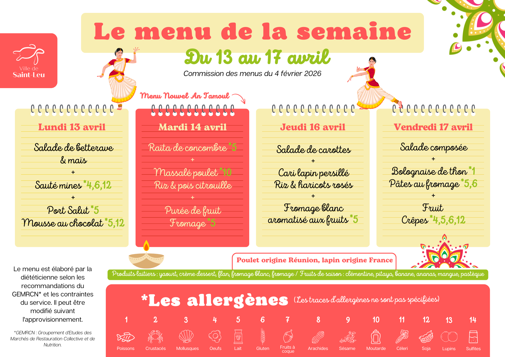Un menu spécial Nouvel An Tamoul sera servi dans les écoles de Saint-Leu mardi 14 avril.