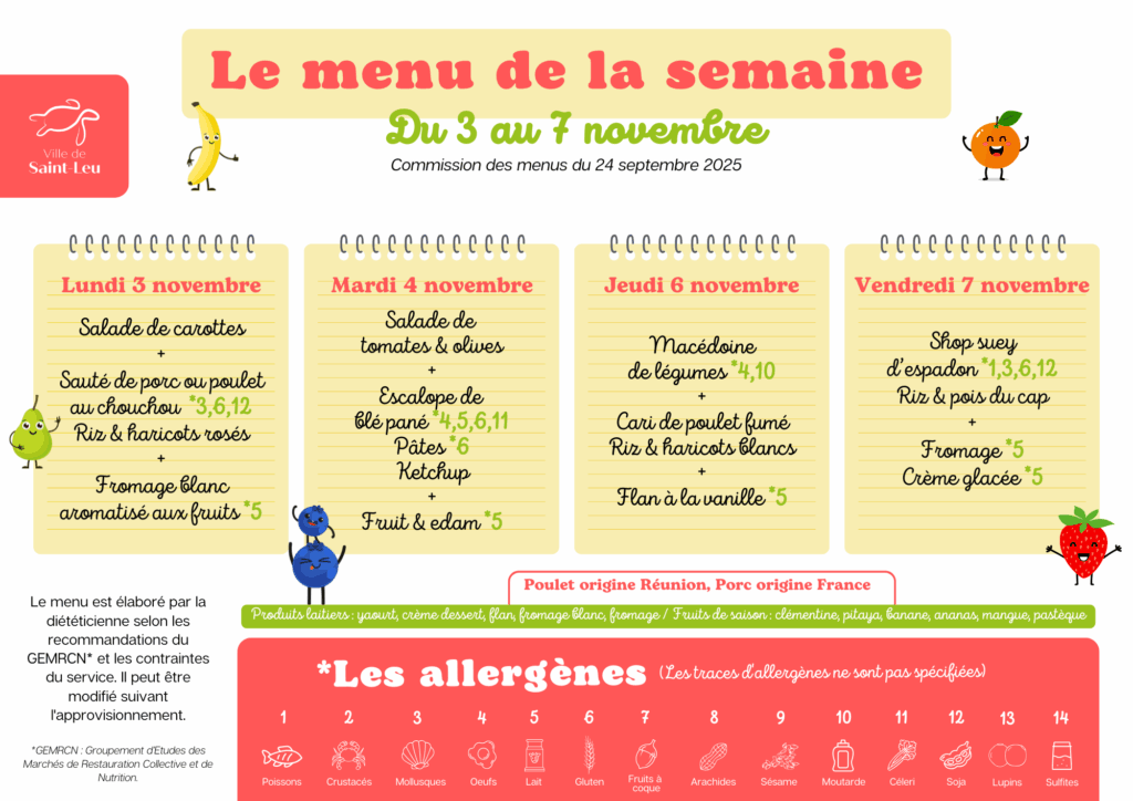 Lundi : sauté de porc ou poulet, riz & grains ;