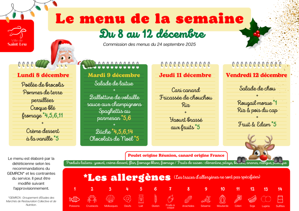 Restauration scolaire : menu du 8 au 12 décembre 2025
