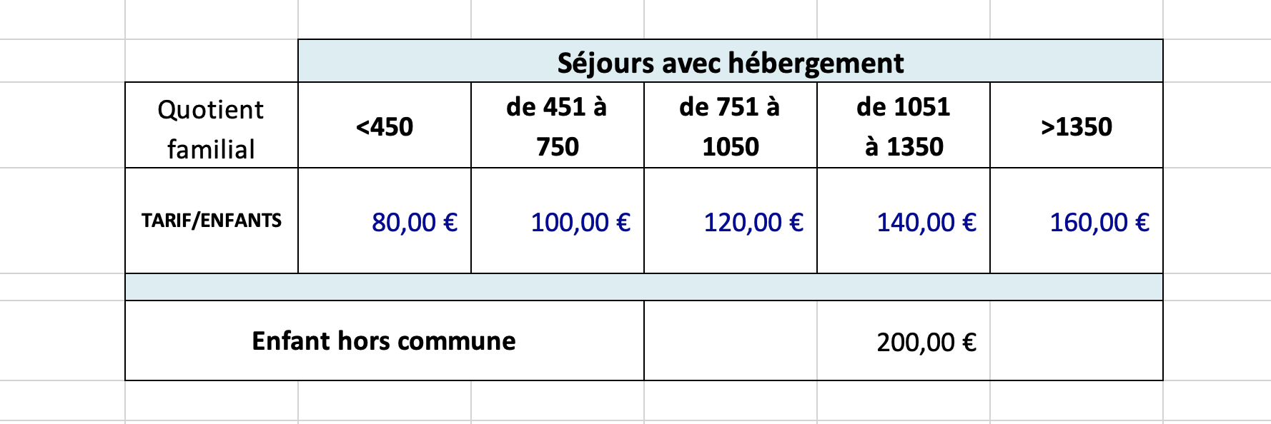 - Tarif extérieur : 200 € pour les enfants résidant hors commune.