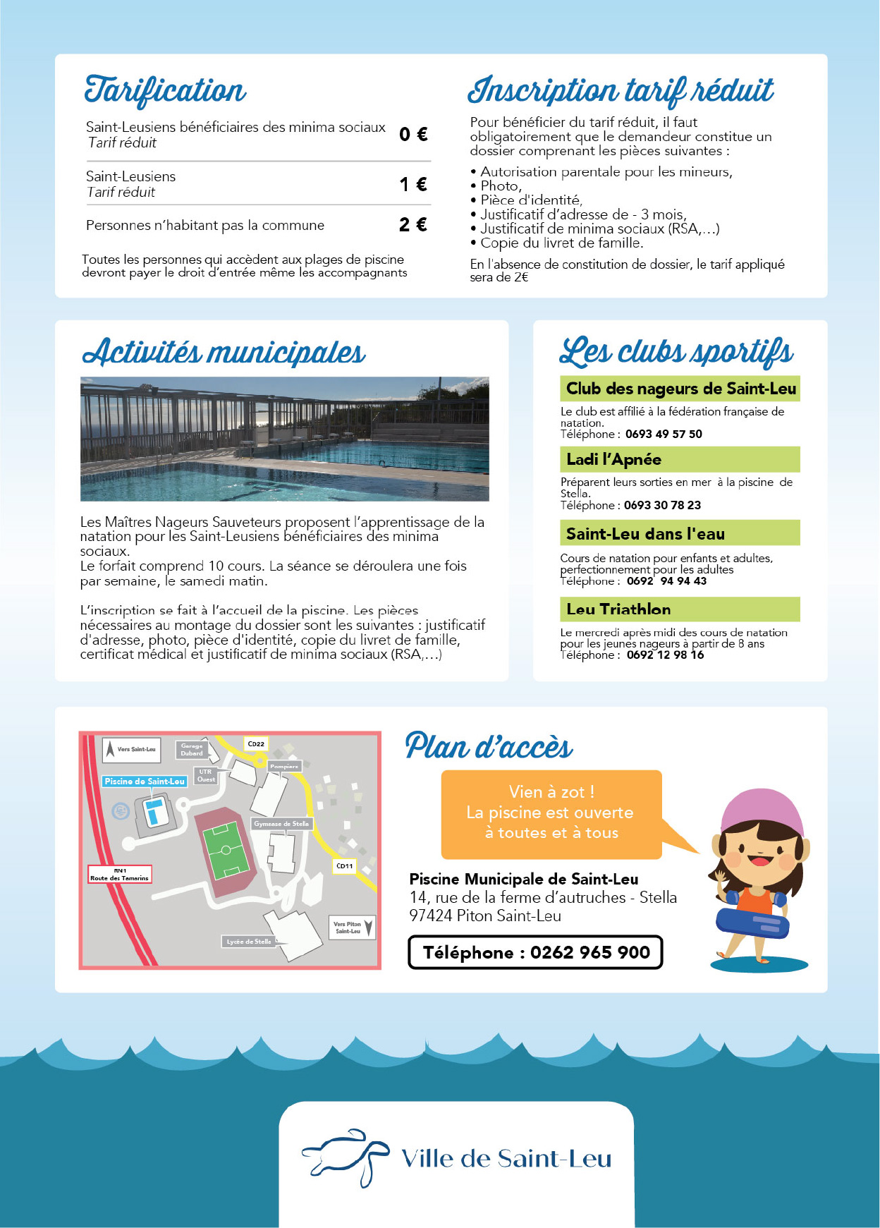 Pour plus d’information vous pouvez contacter la piscine de Saint-Leu au 0262 965 900